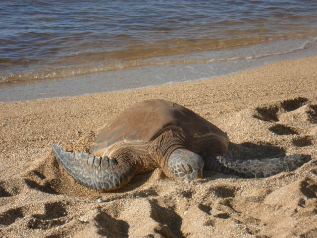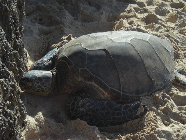 以前、プライベートでノースショアに行ったときは会えなかったホヌさんにも会えました。一頭だけしかいませんでしたが、その一頭に会えたことが幸運でした。