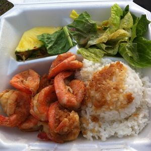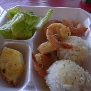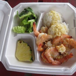私はエビが苦手なのですが、行ったランチはシュリンプ以外のメニューが無く(フルーツサラダがメニューにあるけど実際は売ってなかった)、シュリンプランチ以外のクレジットカードが使えるトイレつきの涼しく綺麗なレストランで食べたかった気もしますが。有名なお店だそうで、ガイドさんが気を使って私に添え物のパイナップルをくれました。