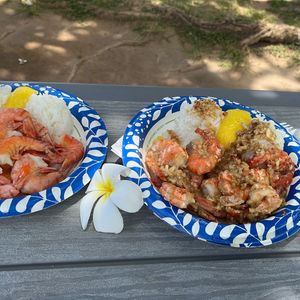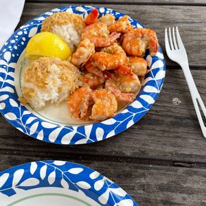 昼食のジョバンニ(ガーリックシュリンプ)が集合場所から少し離れていたので車で送って下さり 冷たい水とビニール手袋まで持たせて下さり 至れり尽せりでした ジョバンニ美味しかったです お土産のサンライズシェルも