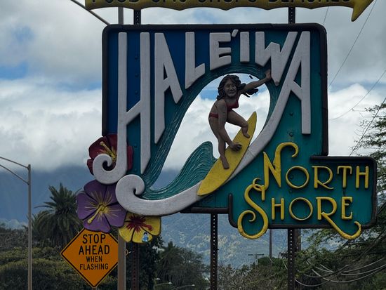 ドール体験後は、ノースショアに行きました。有名な看板へは行けないですが、運転手さんが駐車場に停める前に有名どころを紹介してくれ、以降は自由行動。マツモトシェーブアイスやガーリックシュリンプ、パタゴニアなどに立ち寄ることができます。