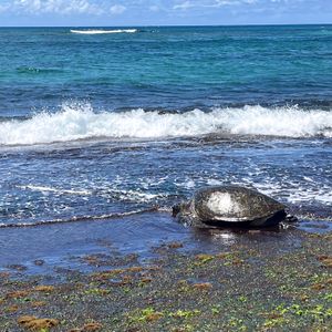 代わりにアリビーチまで行ってみたところ、甲羅乾かしているホヌに出会えて感動しました!