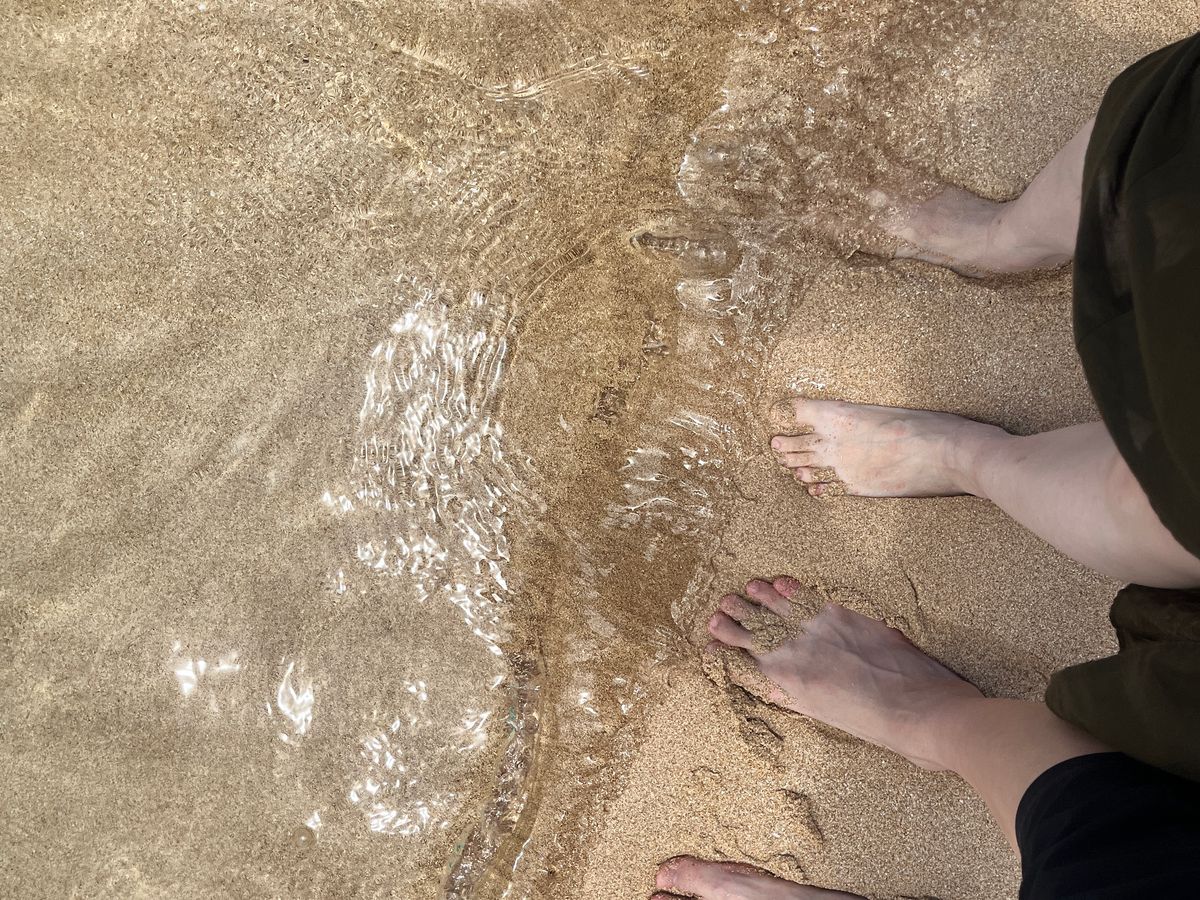 私たちはサンセットビーチで足だけ海に入って写真を撮ってもらいました。