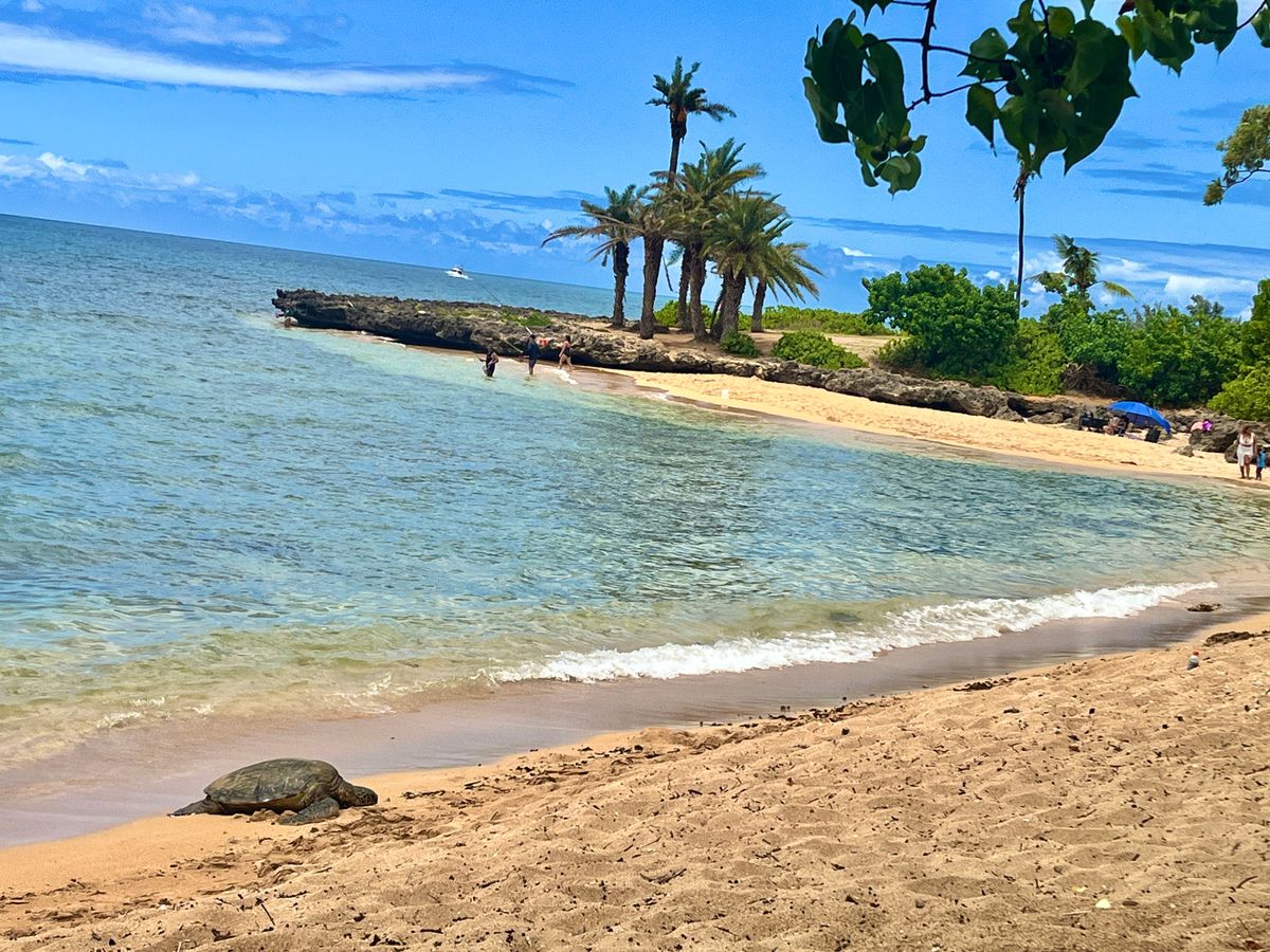 朝10時に出発なので、到着する頃にはジョバンニもハレイワボウルも開いていました。ビーチでウミガメにも会えましたし、パタゴニアやスヌーピーのお店でショッピングも楽しめました!