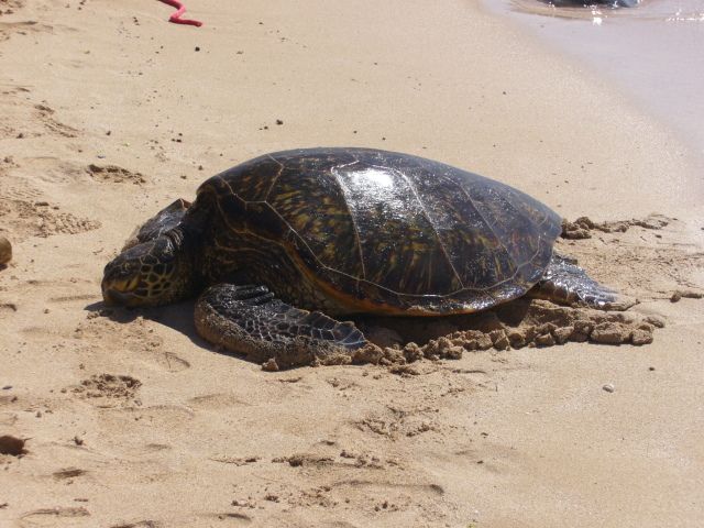 ホノルルに着きホテル午後出発のよくばりツアー、3組7名(全員日本の人)うす曇、車は余裕のある大型バン、ガイドさんはインターネットで評判の小宮さんでした(ラッキー)家族は食事をしていなかったので最初にレナーズにお願いしマラサダをゲット評判どうりでした、モアナルガーデンにてモンキーボットと黄金の木コマーシャルで観るように立派な木です、予定外のパールハーバーにも下車して観ることが出来ました(よくばり)、左右パイナップル畑を観ながらドールプランテーションにて休憩パイナップルソフトを食べる、オイシイ、ラニアケアビーチにてウミガメを探索(3匹砂浜にゲット)その後サンセットビーチにてサーフィンを見学(行った日が波が小さかったザンネン)ハレイワの町でショッピング(古き良き時代の街並み)ノスタルジックな時をあじわいました、休憩の合間にガイドさんが夕食の調達にかけずりまわり関心しました、ハレイワの砂浜にて海と太陽を観ながらピクニック夕食(日本人にも余裕がほしいですね)B級ランチのロコ弁当エビたっぷりでおいしい弁当でした満足、ツアーの最後はタンタラスの丘で夜景見学、今日は金曜日シェラトンの花火があるため急行、見学場所のスペースが1台のみなので会社の連携プレーで特別席で花火を観ることが出来感謝しております、小宮さんハワイの気持ち、楽しいツアーありがとう