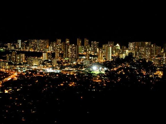 大きな石かと思いきや亀さんにもお会いでき、なんたってこちらのエビは新鮮で美味しかった~!!です。私はガーリック味も良かったけどレモン味が最高!他の者はココナッツも美味しかったとの事でした。要するにエビが新鮮なだけに味付けは何でも美味しいんですよね。後はハワイの夜景。これもきれいでしたね~~Hawaiiへ到着して二日目の午後にこのOPを入れましたので、後の滞在時間はこよなく”街散策”とワイキキの海に浸かり、友達同士の還暦のご褒美の旅と化しました。ただ今回のHawaiiは寒かったぁ~というのが印象的でした。Zenjiさんお世話になりました。