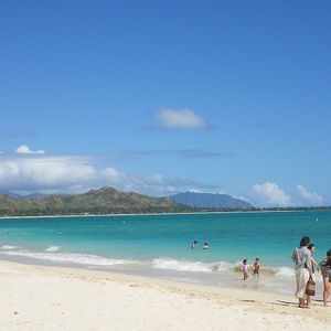 2 白い砂浜と青い海のカイルア・ビーチで写真撮影