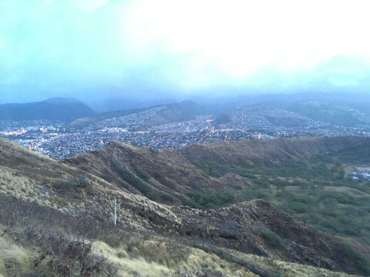 日の出前にダイヤモンドヘッドに登るのですが、山道は灯りが一切ありません。ずっとスマホの懐中電灯機能を使っていました、電池の減りに注意です。