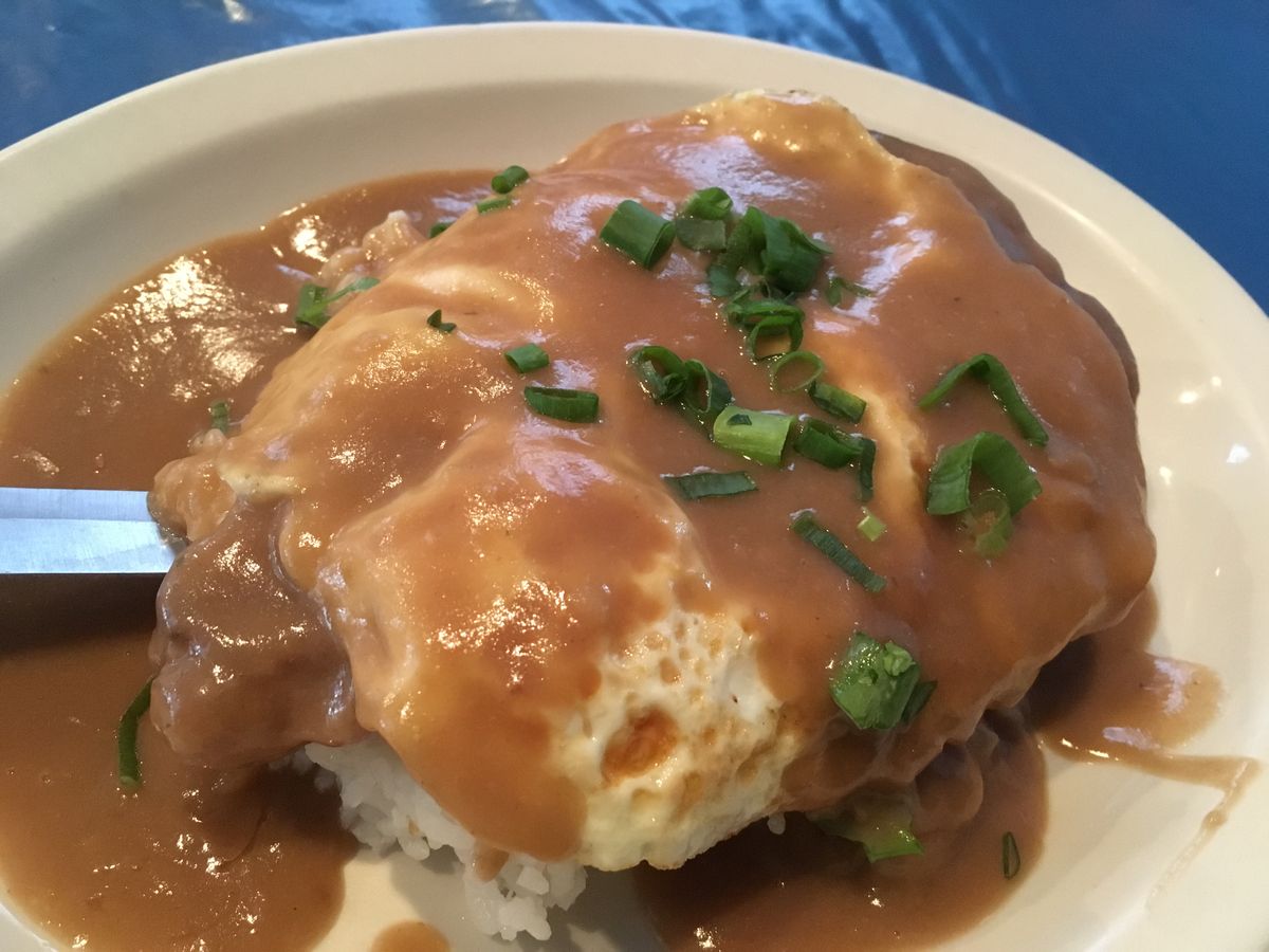 私はロコモコ,主人はロコモケをいただきました。爽やかなグルービーソースが美味でした♫
