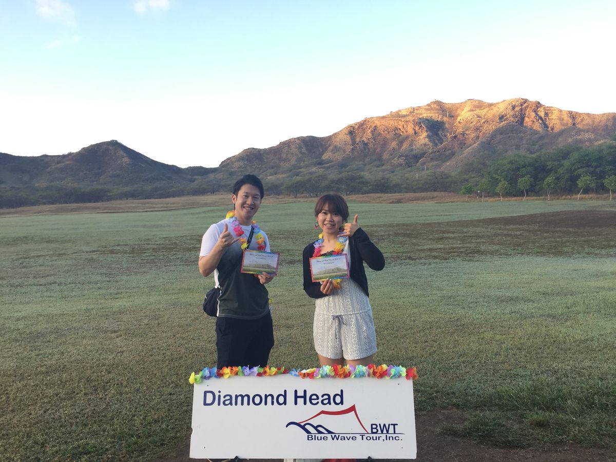 ダイヤモンドヘッドは人が多く頂上には上がれず、日の出も雲が多くはっきりとは見えませんでしたが、綺麗な景色が見れました! 良い運動が出来て、すがすがしかったです。 写真を撮って頂けるサービスもあって良かったです。 その後カイルアに連れて行って頂き、ブーツ&キモズが火曜日お休みと知らず、ショックを受けました。レンタサイクルを借りてカイルアビーチに行ったところ、とってもきれいで砂浜が真っ白でとても癒されました!そのあとホールフーズでお買い物をしました!時間にゆとりのあるツアーでよかったです(^^)