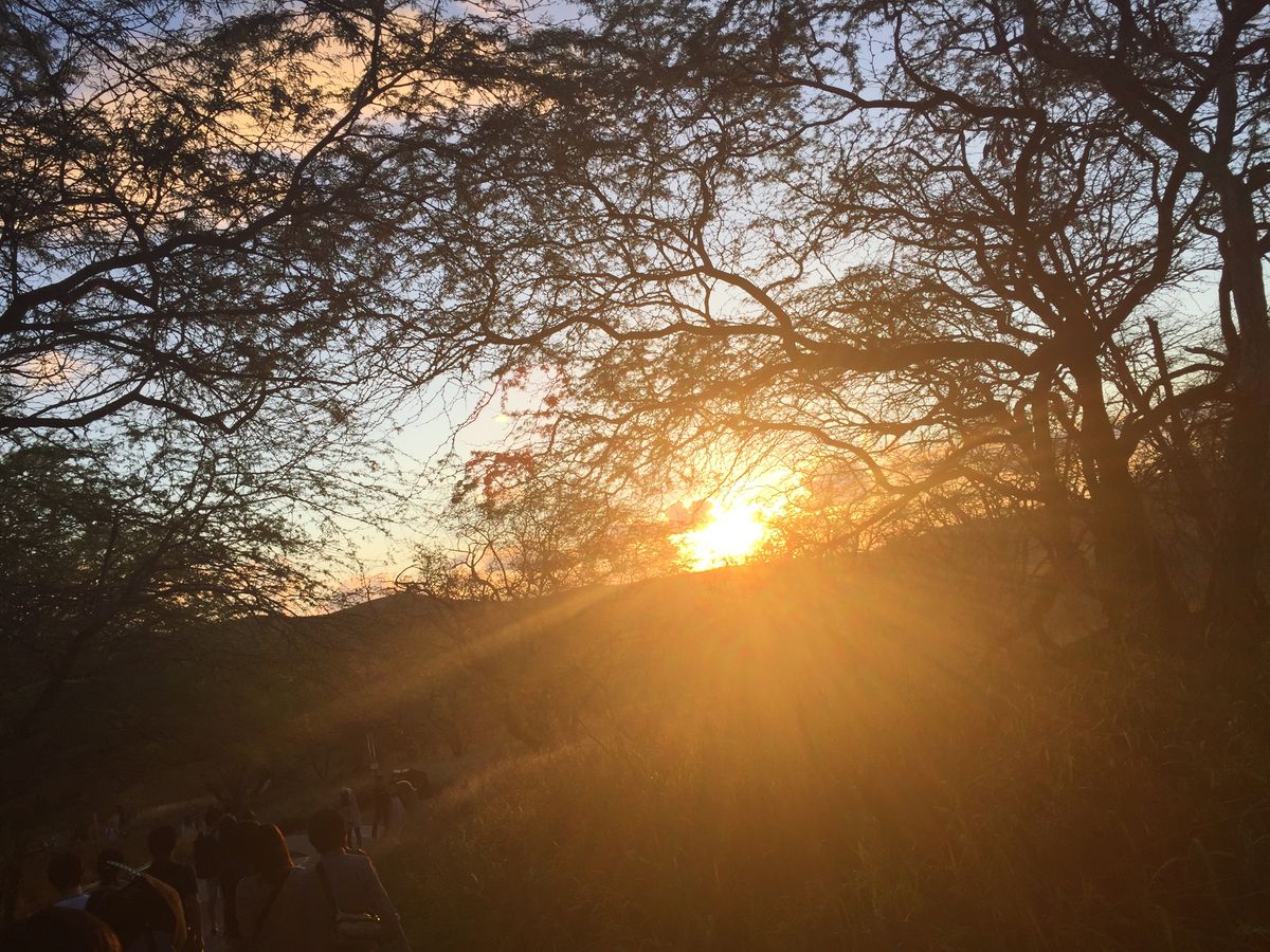 ダイヤモンドヘッドのハイキングは、日の出の時間が7:11だったのにもかかわらず、バスの現地出発時間が7:40だったため、頂上で日の出を見ることなく下りながらの鑑賞だった。