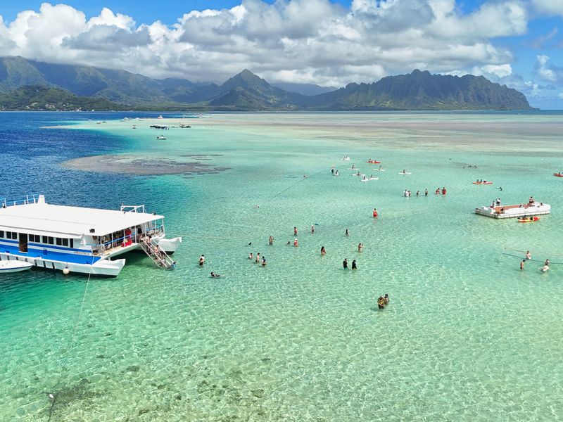 オアフ島で一番知られているのは、天国の海や天使の海と呼ばれるカネオヘ湾沖に浮かぶサンドバー。幻想的な場所でサンドバーウォークやシュノーケルなどアクティビティを楽しんだり、絶景を満喫できます。