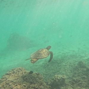 途中で回遊中のウミガメに遭遇できて、ハワイ旅行の中でも特に印象深い良い思い出になりました!