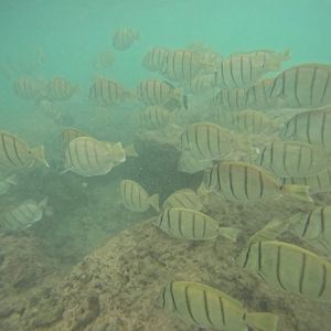 遠浅の海で、足が付いた状態でも海中にいる綺麗なお魚が見えて怖くなくて最高でした。