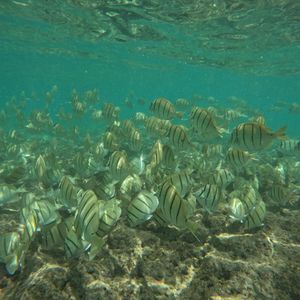 シュノーケルの練習をしつつ、お魚のいる所に案内してもらい沢山の魚の群れが見れました!気づけば随分泳いだなぁという感覚。