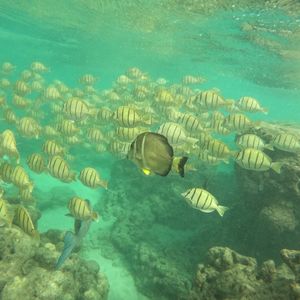 シュノーケリングでキレイなお魚をたくさん見られてサイコー!初めてのハナウマ湾だったので、ガイドさんのエスコートで、ポイント案内してもらいました。もしガイドさんなし行ったらなかなかポイントわからなかったと思います。