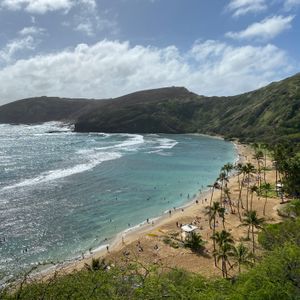 ハナウマ湾は綺麗だったが波が高くて海に入りにくかった。スパム握りとバナナとシリアルバーと水をもらったがスパム握りが温かくておいしかった。そもそも1月は天候が不順であまり太陽が出ない事を聞いた。前もって分かっていれば時期をずらして行けたなぁと事前に確認していなかった事を後悔した。全体的に天気がよければ初めてのハワイの方にはよいツアーだと思います。