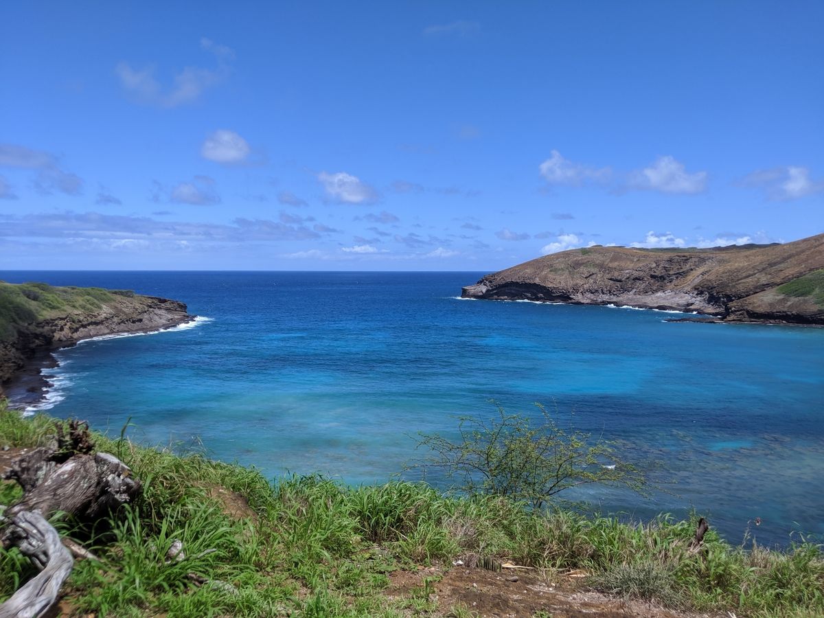 ツアー当日は、好天にも恵まれ、時間通りのピックアップ、ハナウマベイには予定より早く到着し、評判通りの海のグラデーションに目を奪われ、ガイドブック通りの景色にひたすらシャッターを押しまくりました