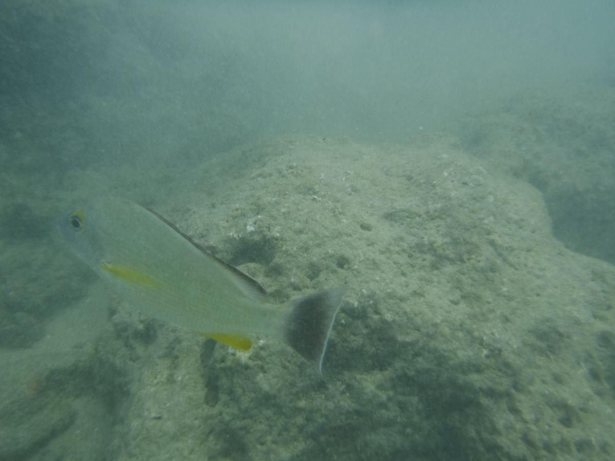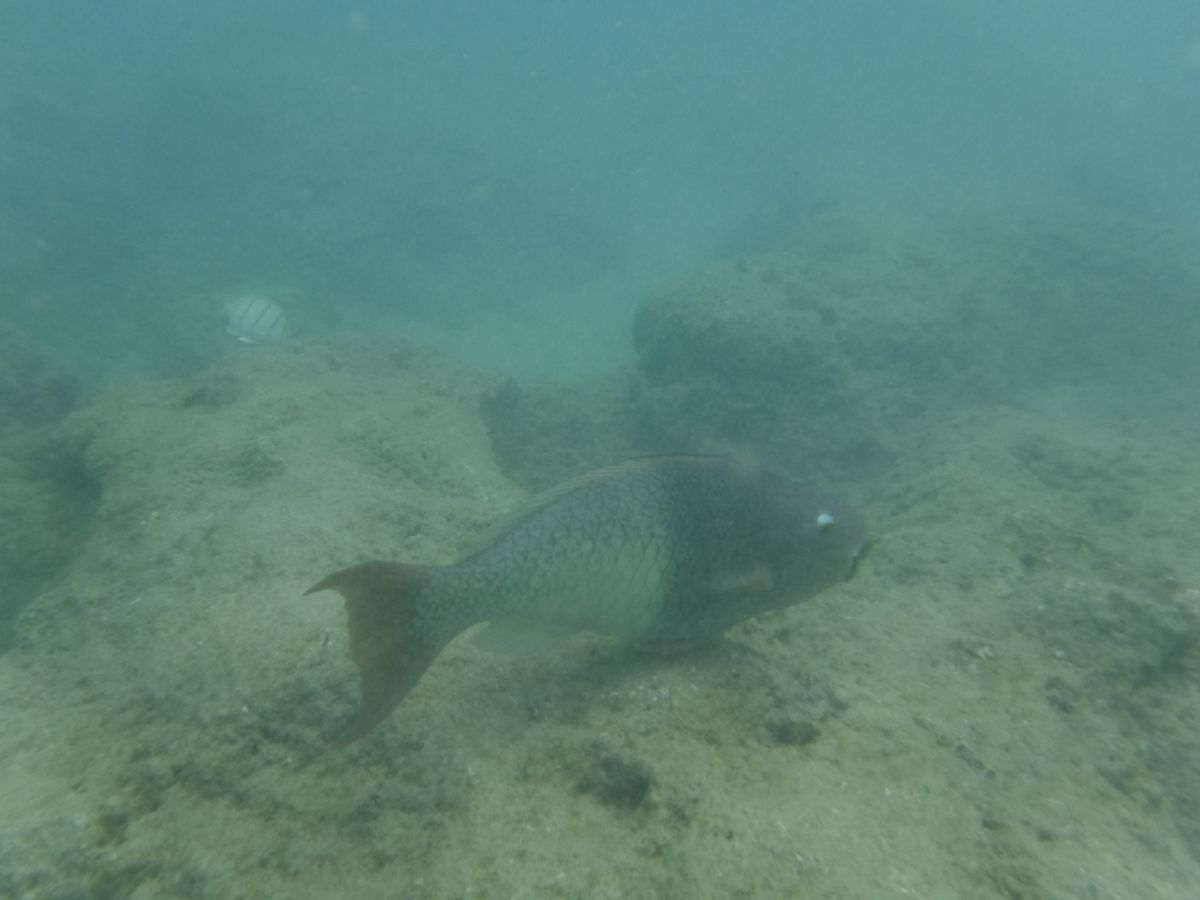 珊瑚はほとんどいなくて、岩と、時折白い砂のところがあり、カラフルな魚はいますが結構大きめな印象!