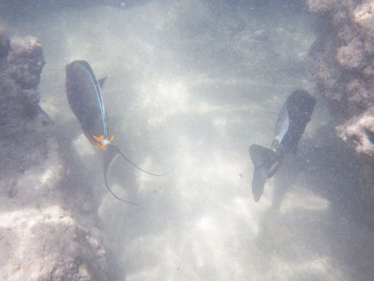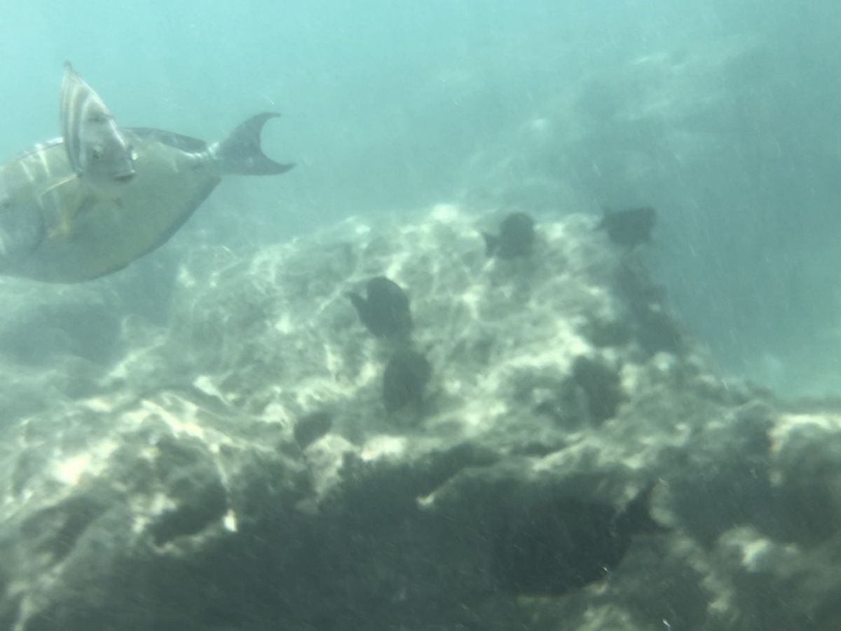 波が荒かったけれども、大きな魚(40㎝ぐらい)から、名前が分からないけれど小さな魚も一杯見れて楽しかったです。シュノーケリングの体験もプールで練習していったので、まったくの不安なし。