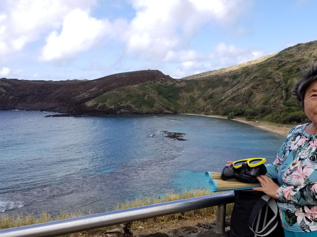 主人と二人で参加しました。ツアーも私たちを含めて7人の少人数で、チエコさんとダン(日本語ペラペラ)二人でのサポート体制。ハナウマ湾へ向かう道中も色々、お話をしてくれて、楽しみながら向かうことができました。