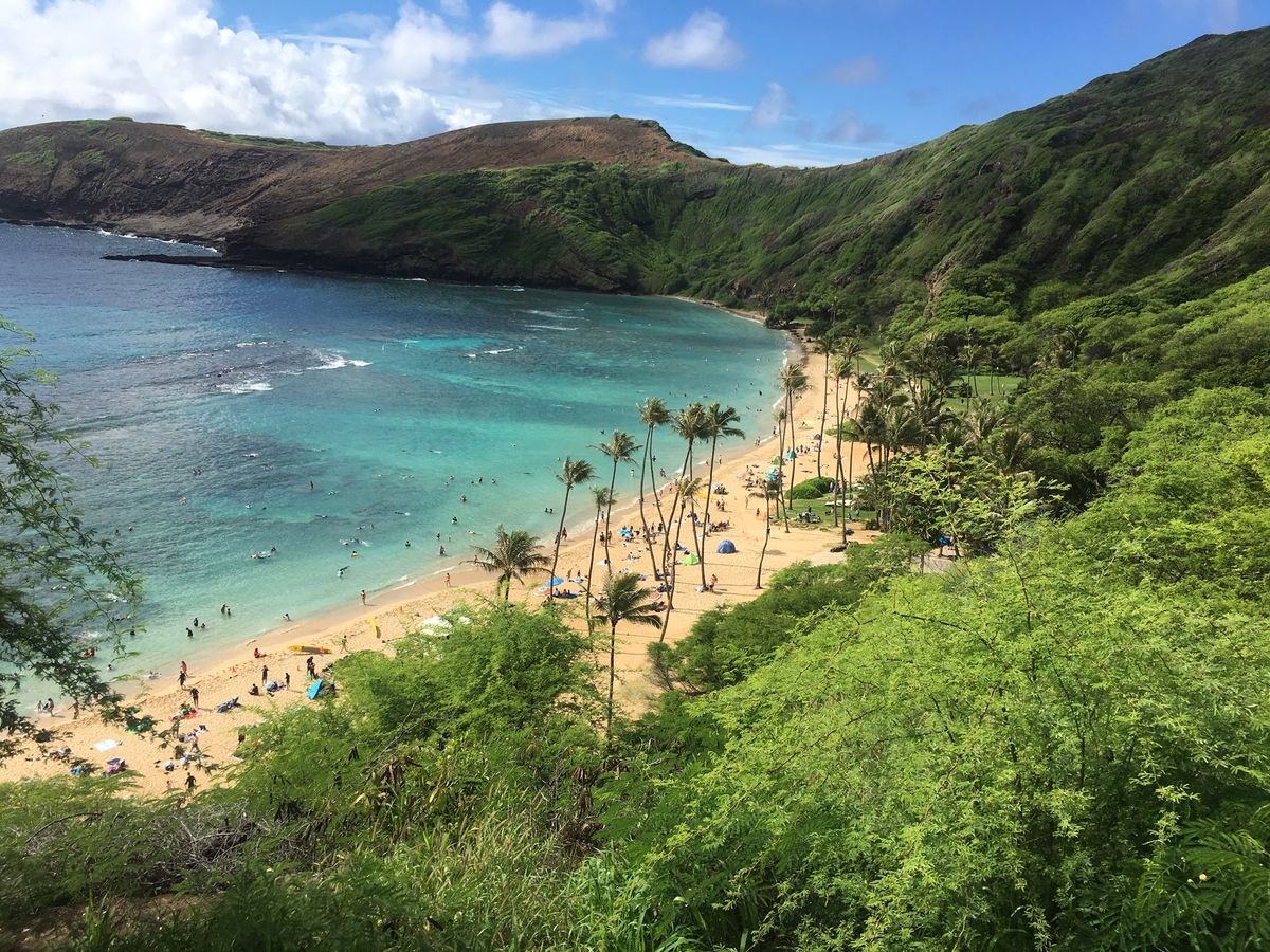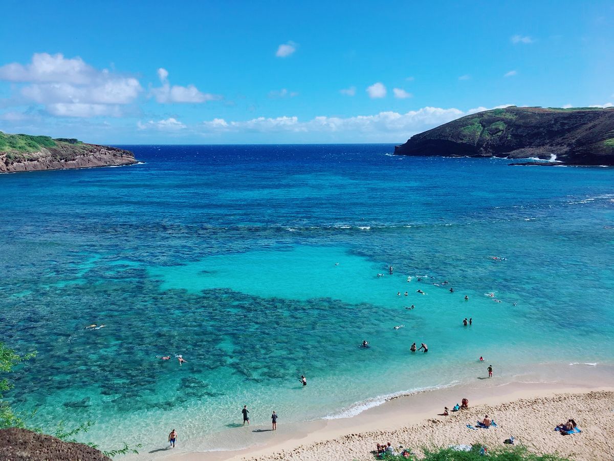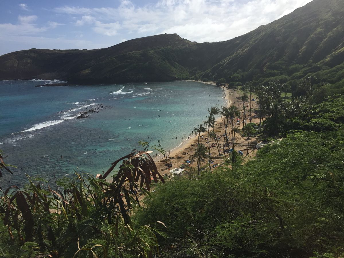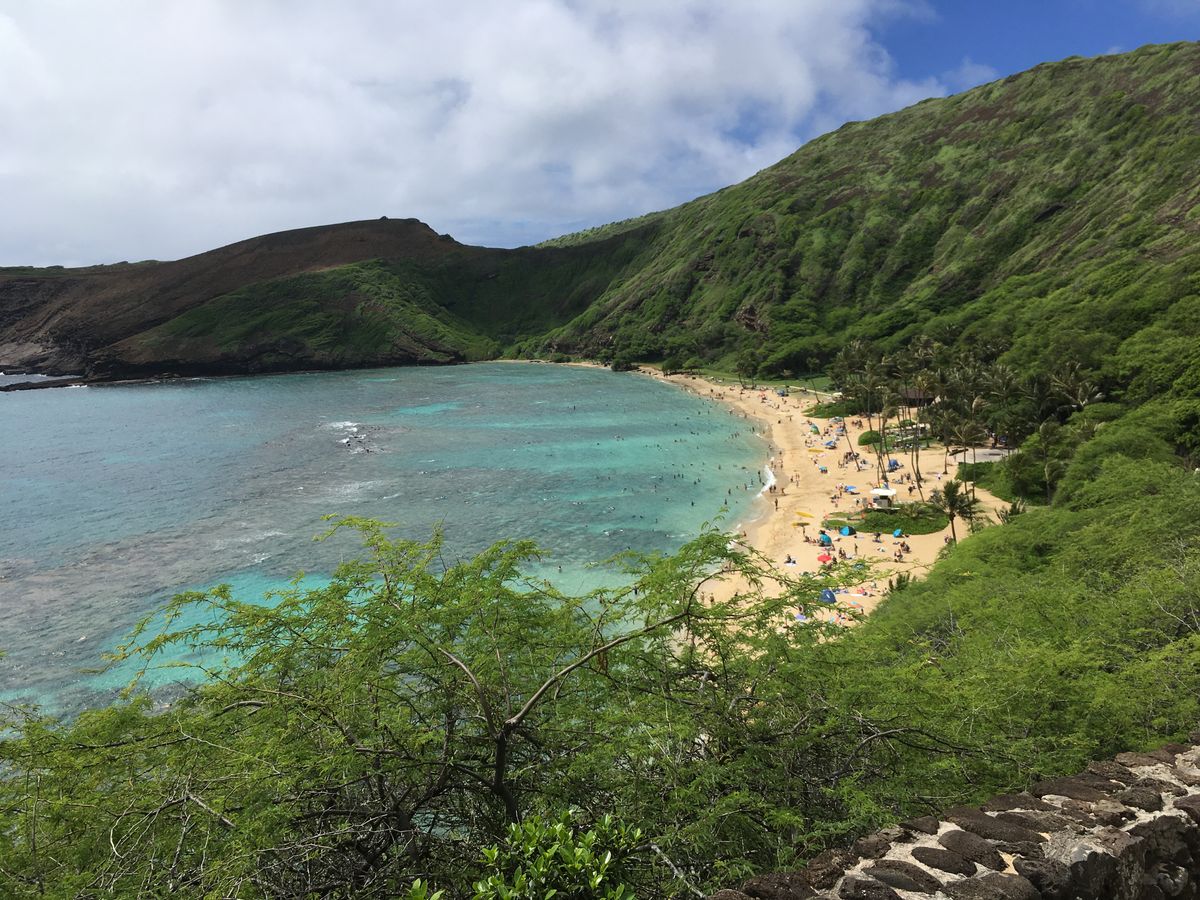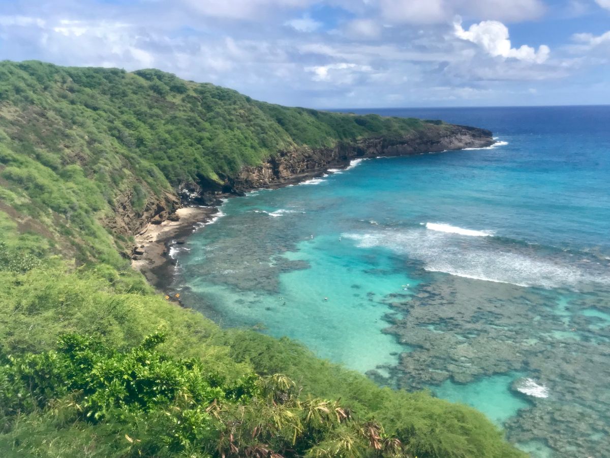 ハナウマ湾の絶景、海は申し分なく綺麗でお魚も少しですが見られました。