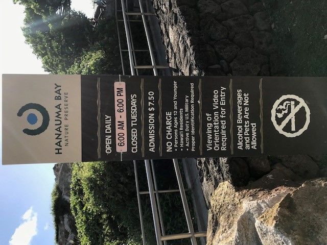 ハナウマ湾の入場料は自分たちで入口で払うので、アテンドのあるツアーとは違い、送迎とライフジャケットなどのレンタルといった感じ。ハナウマ湾まで5分程度のお店で説明とライフジャケットなどを受け取って連れて行ってくれます。(イスのオプションはゴザを全員支給されるので不要でした。)現地はハナウマ湾でシュノーケリングするくらいしかやることがないので2時間あれば十分!で、肝心のシュノーケリングは波があるせいか少し海が濁っていてカラフルな魚はあまりいませんでした。オアフ島全体に言えますがシュノーケリングはグアムの方が綺麗です。