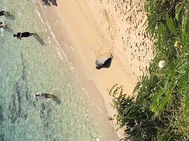 ビーチに上がるとなんとアザラシ(モンクシール)がゴロンと昼寝をしててびっくり
