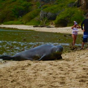 この度は御夫婦でツアーにお越しいただき、ありがとうございます。ハナウマ湾は珊瑚礁の上を泳げる時が一番お魚が見れますので、本当に水族館の中を泳いでいる様ですね。最近はウミガメよりもハワイアンモンクシール(アザラシ)の方がよく見れるんですよ。しかもこの日は2頭なんて、良かったですね。是非またハワイにお越しの際にはツアーにリピートしてくださいね。その時はウミガメが見れる様に頑張ります。本当にありがとうございました。Mahalo!!