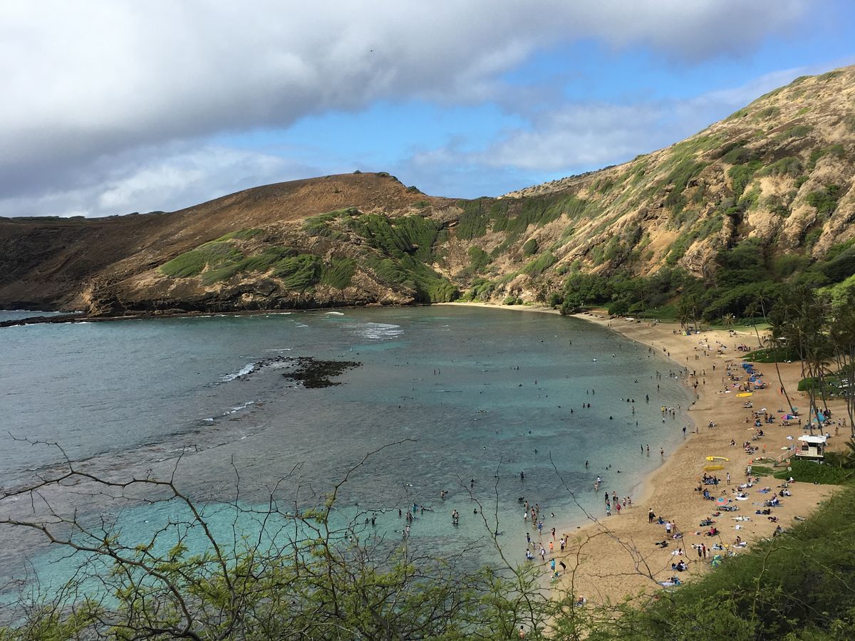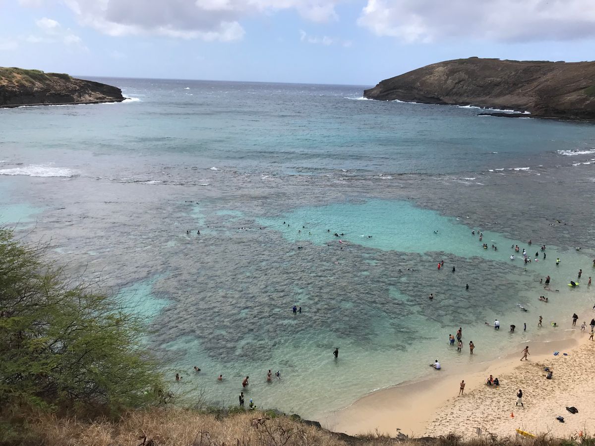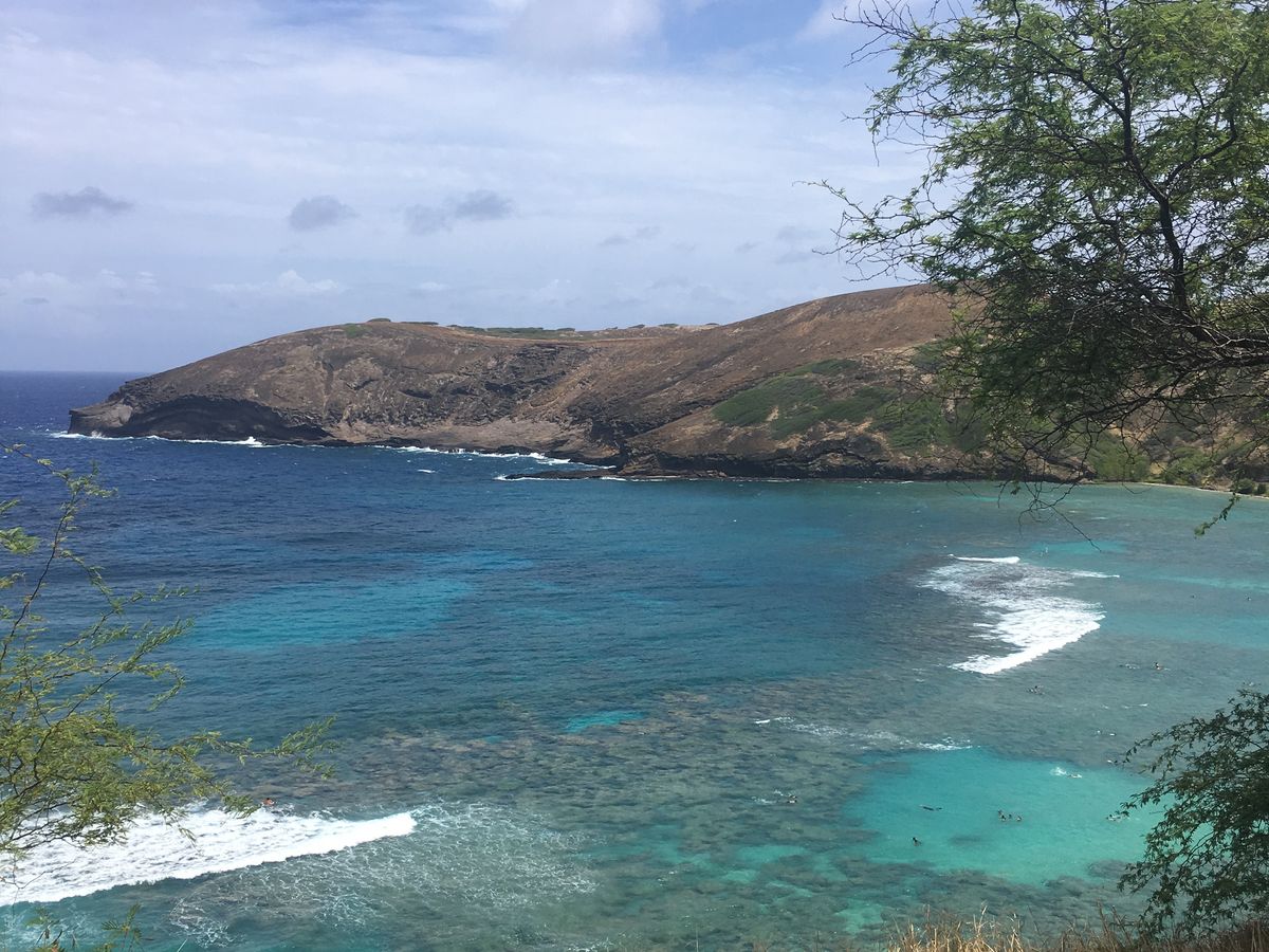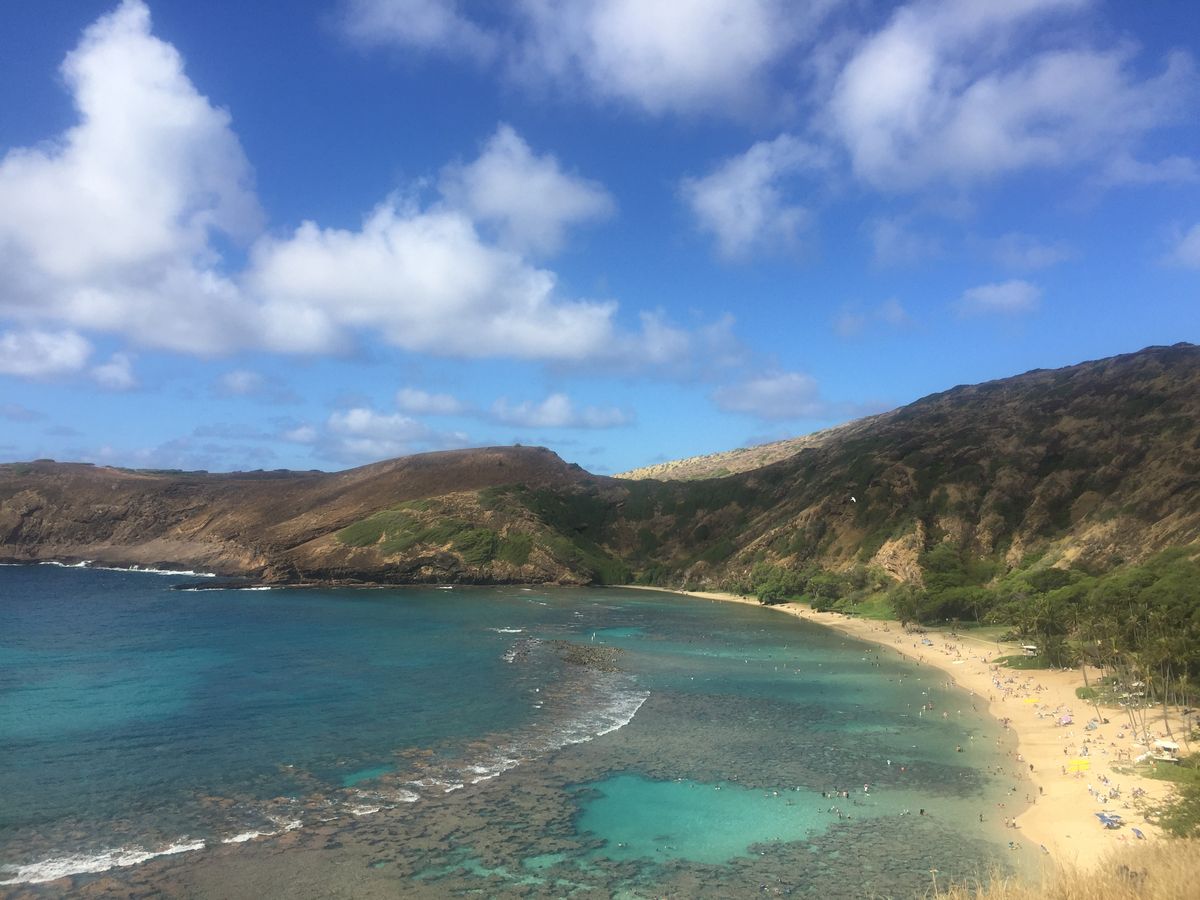 坂の上から見たハナウマ湾のキレイさには感動しました。