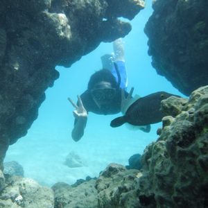 新婚旅行で参加しました!2人とも泳ぎは得意なので、安さ重視の送迎のみかガイド有りにするか悩みましたが、結果ガイド有りのこのプランにして大正解でした。ガイドのカオルさんはお魚や海ガメポイントなどを熟知しており、ハナウマ湾に来てた誰よりも広範囲に素敵な海の世界を安心して楽しむことができました。