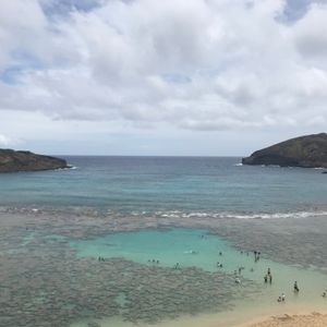 昼過ぎから別の予定があったので、昼にワイキキに戻れるこのツアーに参加しました(戻る時間は当日選べるので、ゆっくり滞在することもできます)。ドライバーは外国の方です。車内で契約書を渡され、サインをしました。ツアー事務所に着くと日本人スタッフの方がいて、シュノーケルセットやゴザを受け取り、説明を受けます。そして車に乗り、ハナウマ湾近くの駐車場で降りて、歩いてハナウマ湾へ。早速シュノーケルをしようとしたけど、3月の朝で気温がそれほど高くなく、海水が冷たくて海に入れず。子どもたちも寒いと言ってすぐ海から上がってしまいました。寒かったですがウェットスーツを着ている人はほぼいませんでした。仕方ないので浜でのんびり過ごし、気温が上がるのを待ちました。昼前になり少し暖かくなったので、海へ。大きな魚がいました。魚は期待していたよりは少なかったです。レンタルしたマスクはすぐ曇ってきたので、曇り止めを付けて欲しいと思いました。シュノーケル満喫とまではいきませんでしたが、家族でハナウマ湾に行けて満足です。スタッフの方、お世話になりありがとうございました。