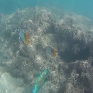 魚は、沖縄のイラブチャーよりかなり大きい。ここでしか見られないお魚もいます。ずいぶん亀もさがしていただきましたが今日はウミガメはいませんでした。シュノーケリングとしてはいいです。もっとゆっくり見ていたかったですが、シュノーケリング時間としては約1時間でした。