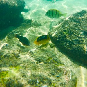 すごく綺麗な海で、浅瀬で、泳ぎに苦手の私でも、初めてお魚の群れと一緒に泳いで、すごく楽しかったです!