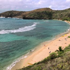 きれいな海でのシュノーケリングを楽しみにハナウマ湾ツアーに参加したのですが、ツアー遂行会社のスタッフの方々には全く不満はないのですが、肝心のハナウマ湾が、想像していた澄んだ海、たくさんの熱帯魚たちとの遭遇などのイメージとは全く違っていました。海水は透明度が低く、魚たちはたくさんいましたが、よく見えませんでした。翌日していたマリオットホテルの前のビーチにいったら、ハナウマ湾よりきれいな海でした。天候のせいかもしれませんが、私のハナウマ湾はがっかりでした。