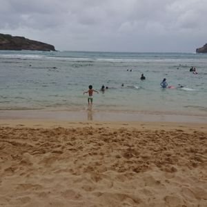 ハナウマ湾到着後、2時間程度シュノーケリングを楽しみました。子供でも足が付くところで魚が見られましたが、シュノーケリングはそこそこに砂遊びに夢中になっていました。