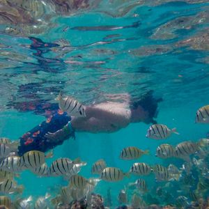 思っていた以上に素晴らしかったです!初めてのシュノーケリングで少し緊張していましたが、ガイドの方々はとても親切で助けてくれました。全体のプロセスについて完全に安心できました。たくさんの魚を見ることができ、数センチの距離で泳いでいる魚の群れや、さらにはウミガメも見ました。