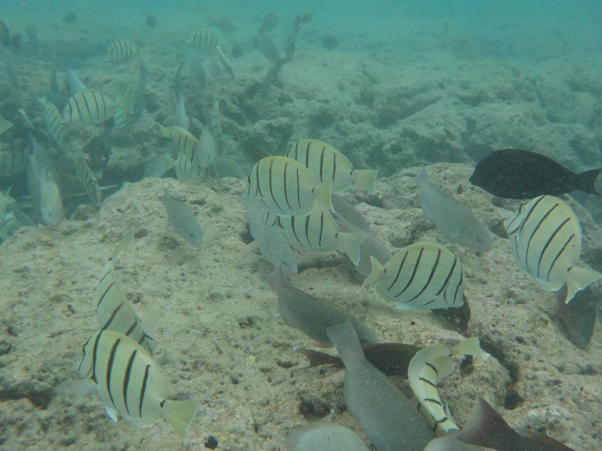 着いた時は、魚が居ない…と思ってましたが、ビーチの真ん中より奥あたりの沖の岩場の所には写真やビデオで見たような、たくさんの魚がいて、テンションが上がりました!