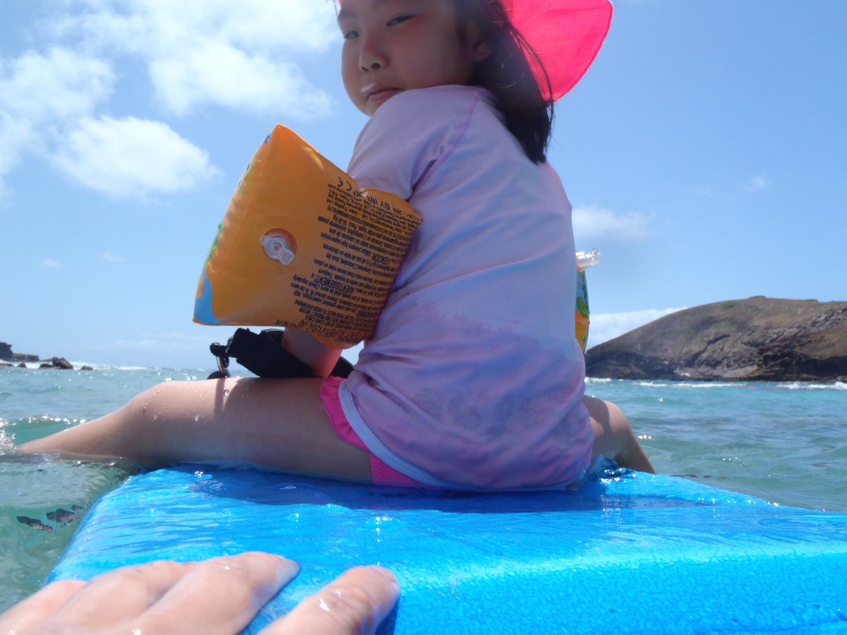 私と父は20年ぶりのハナウマ湾。子供達は海で泳ぐのもシュノーケルも初めてで、ほとんど泳げません。