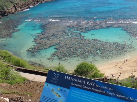 家族4人でツアーに参加しました。ハナウマ湾はハワイに行ったら必ず行くところと決めているので今回も躊躇なく申し込みました。いつものように自然の大切さを学ぶ20分くらいのビデオを見てすばらしい海を見ながら坂を下りていきました。シュノーケルは海がめも寄ってき一緒に並んで泳ぐことが出来て、最高のシチュエーションでした。浜辺は日陰が全くないのでかなり暑く、帽子やサングラスはあったほうがいいですね。透き通るような海辺での一日は何度行っても大満足です。帰りは坂の下から格安有料トロリーもあるので疲れてるのと荷物で大変なのでいつも利用します。大変便利です。
