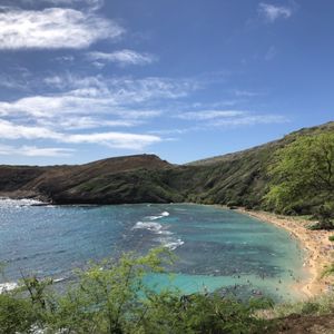 ハワイで初めてのハイキング、早朝ではなかったのでゆっくり出発出来、爽やかな風もあり昼間でも少し汗をかくくらいで、気持ちの良い登頂でした!その後少し移動しハナウマ湾では、とても綺麗な海で感激しました!海に入り、浅瀬に顔をつけるとすぐに珊瑚礁とカラフルな魚がたくさんいて、ほんの少し奥へ進むとウミガメも泳いでいて、海の中もビーチサイドも写真の断片のようで、今自分もその中にいるんだなぁと思うと、とても幸せな4時間でした!