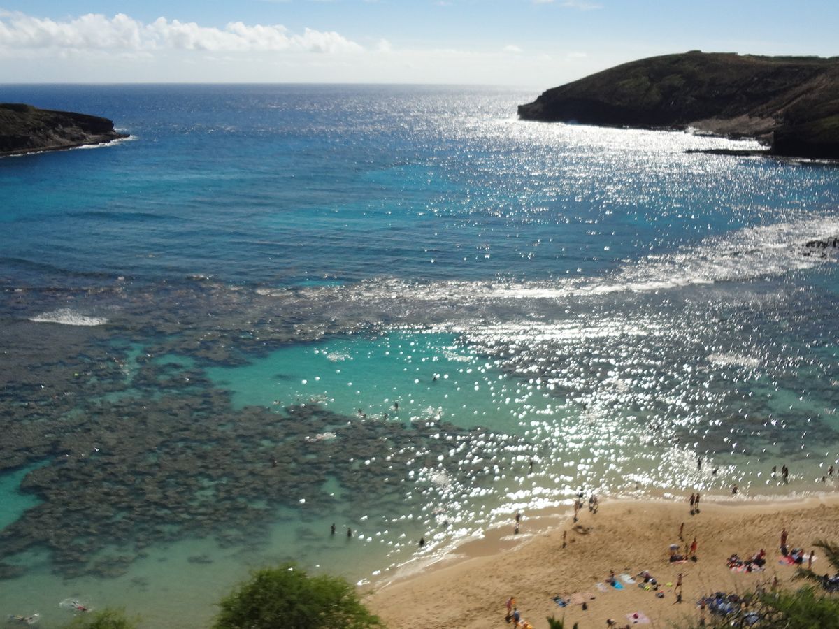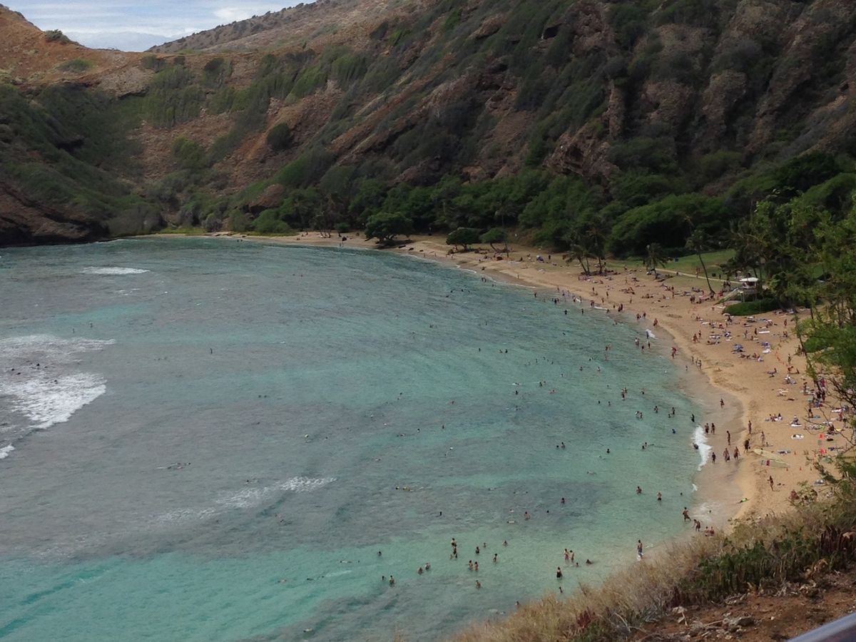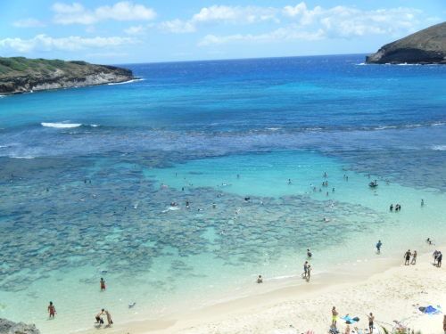 コメントにもありますように、ビーチから歩いて入れて、たくさんのお魚と海ガメを見る事が出来るので、ハナウマ湾はハワイでは人気のあるスポットです。