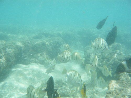 でシュノーケルしても魚はたしかにいますが、そこまですごいわけでもなく、、、