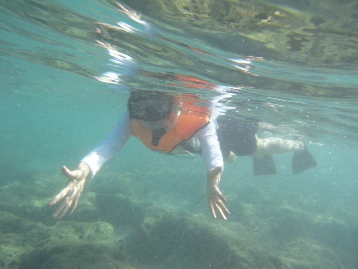 50代の母との参加で、母はほとんど泳げないので、浅いところだけの予定でした。しかし、途中でインストラクターさんが声をかけて下さり、母の手を引きながら、魚がたくさんいるところや、うみがめがいるところを泳いで下さいました。初シュノーケリングでしたが、おかげさまで、私も母も、一緒に楽しむことができました。うみがめはかわいく、綺麗なお魚も見れました。少人数1グループで、インストラクターさんは2人いらっしゃるので、泳げない方も含めたみなさんが、安心して楽しめると思います。