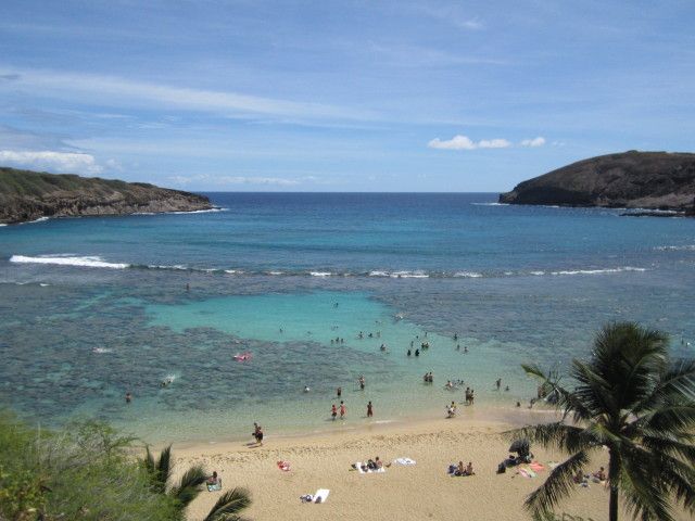 20年ぶりくらいにハナウマベイを訪れました。昔はレンタカーを借りて自分で行ったのですが今回は車を借りる予定がなかったので送迎をお願いしました。円高の恩恵もありますが送迎をしてもらってシュノーケルセット一式を貸してもらいその上とトローリーもついてこの値段は非常に安く感じます。(坂道はきついのでトローリーは必須です。一回、75セントでのれます。)スケジュールは7:10にシェラトンホテルでピックアップ。8:00にツアー事務所到着し足ひれ、シュノーケルセット等を借り、8:30ハナウマ湾到着。教育ビデオ(結構きれいなビデオで退屈しませんでした。日本語のオーディオもあります。)を見た後、9:00トローリーでビーチへ。餌付けが禁止された影響なのか魚は少なくなったと感じました。自然保護のためには仕方ないのでしょうが昔、パンに群がる魚の群れを見るのが楽しかったので、すこし寂しい感じでした。2時間強ビーチで過ごした後再びトローリーで上がり11:40迎えが来ました。(もっと長く居たい人は他の時間を選べるようです。)12:00事務所着、他のツアー客がそろうのを12:30まで待ち(その間無料のコーヒーサービスがありました)ホテルには道が渋滞していたこともあり13:15に着きました。
