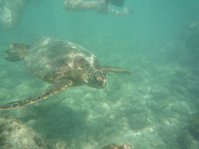 主人は海亀と泳いだそうです!!