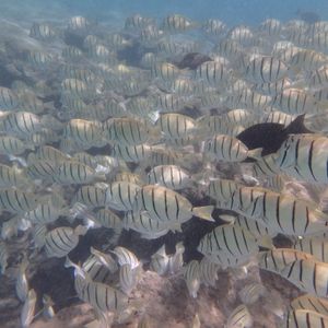 海がきれいで、色んな魚達が泳いでいるのを見ることができました。