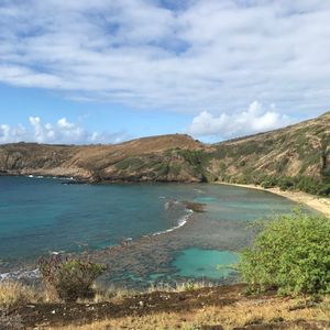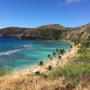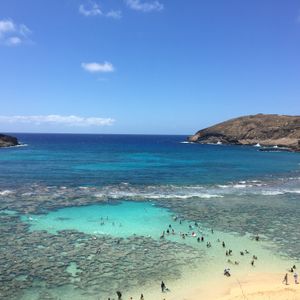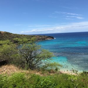 上から見るハナウマ湾はとても蒼くて綺麗でした!