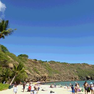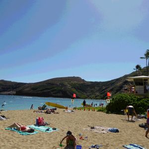 ハナウナ湾は綺麗で足元 熱帯魚が泳いでいるのが見えるよ・・・とまで言われ、期待して行きましたが、波が異常に強く、砂で海中がにごっており、透明度は全くNG。 非常に残念でした。 ダイヤモンドヘッドのハイキングは最高に気持ちよく、山頂からの景色は絶景でした。