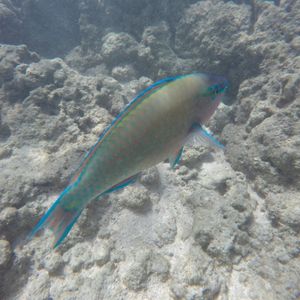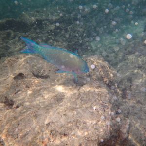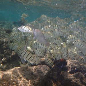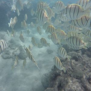 ビーチ近くにも魚がいて、泳ぎの得意でない妻も魚を見ることができました。