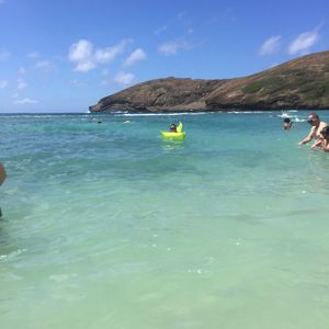 崖上からハナウマ湾を眺めるのもとても綺麗ですが、やはり海に入って海の中の様子を眺めるのも素敵でした。直ぐ近くにたくさんの種類の熱帯魚が泳いでおり、とても楽しめます。私が訪れた日はさほど日差しも強くなく、快適に過ごせました。でもしっかり日焼けはするので、ご注意ください。